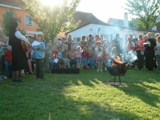 der Johannisfeuer ein. Vorläufer waren wohl die heidnischen Sonnwendfeuer,
