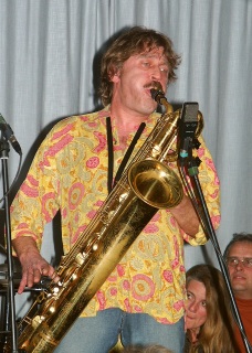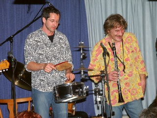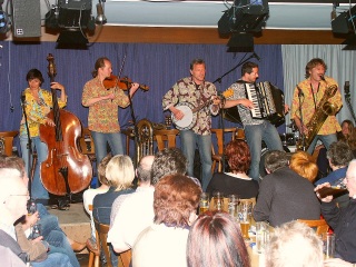 Wenn je einer das widerspenstige Wesen einer Klarinette unter Kontrolle hatte, dann ist dies Andy Arnold. Er entlockt dieser leicht weinerlichen Vertreterin unter den Blasinstrumenten hauchzarte Töne, verleitet sie zu jubelndem Gesang oder spöttischem Lachen. Nicht minder routiniert und liebevoll treibt er auch seine Saxophone zu Höchstleistung an. Gemeinsam verleihen die Fünf Blues, Swing und Hillabilly neuen Drive und kombinieren auch schon mal Bonanza, Mozarts Rachearie (Miene als markerschütternde Königin der Nacht) und einen CanCan simultan zum Hit. |