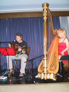 Eine außergewöhnliche Kombination aus Gesang, Keyboard, Gitarre und Harfe bot am Wochenende Valerie Mc Cleary mit ihren musikalischen Begleitern auf dem Pindharter Brettl. Erstmals traten Christian Doepke (Keyboard), Edi Schorer (Gitarre) und Evelyn Huber (Harfe) in dieser Formation gemeinsam auf. Um so erstaunlicher die Sicherheit, mit der sie sichtlich vergnügt jammten und improvisierten. Der unbestrittenen Leistung der Musiker zum Trotz wollte der Funke zum Publikum anfangs nicht so recht überspringen, spätestens nach "Großmutters Kaffeehaferl-Song" war das Eis jedoch gebrochen. Vielleicht hätte es zu Beginn ein paar mehr irische Trinklieder zur Hebung der Stimmung gebraucht. . . |