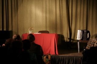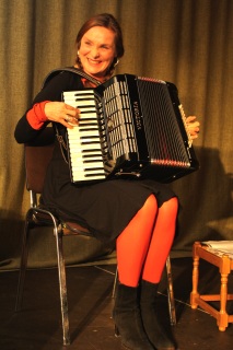 Schleichend kriecht in der Gestalt von Franz Eibentaler nicht nur der Widersacher des Postinspektors Sittinger in dessen Eheleben, sondern auch das nationalsozialistische Grauen unter die Haut des Zuhörers. Aus einem Schmunzeln wird spätestens beim Aufschrei "Rache für Eisner" eine Gänsehaut. Michaela Dietl, eine urige Mischung aus clownesker Pippi Langstrumpf und versunken musizierendem Bohémien, unterstreicht die theatralische Wirkung des Vortrags auf unkonventionelle Weise. Mit vollem Körpereinsatz an der Ziach kommentiert sie die bayrischen Passagen als lallendes "bsuffnes Wogscheitl" oder kikeriki-ender "scheener Ho". Versetzt den Zuhörer lautmalerisch in die Straßentumulte der ausklingenden Räterepublik. Oder versinkt in romantischen Improvisationen. | ![]() |