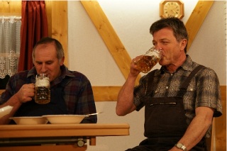| Hierbei handelt es sich um ein heiteres Stück, in dem der Haustyrann Kasimir Karpfinger (Peter Zellner) seine Vroni (Maria Mayr) öfter mal verärgert, der liebenswerte Sohn Steffl (Manfred Meixensberger) seine Mutter aber stets unterstützt, ansonsten aber macht was er will. | ![]() |