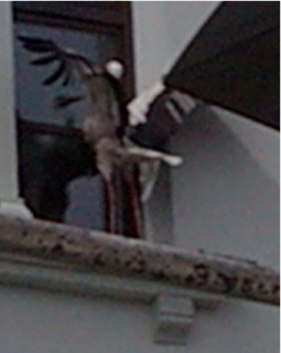 | Auch der Storch ließ sich während des ganzen Festes immer wieder auf aggressive Machtkämpfe ein. Sein gespiegelter Rivale war ihm ein Dorn im Auge. Er zog damit viele Schaulustige und wurde auch von der Partnerin neugierig beäugt. |