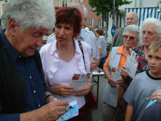 Allerdings, musste Milchmeier einräumen, seien die Wettbewerbe mit Ausnahme des Bierkrugstemmens nicht angenommen worden (in dieser Disziplin setzte sich der Geisenfelder Michael Peyerl gegen sieben Konkurrenten durch und darf sich nun auf eine Wochenendreise nach Hamburg freuen). Dem Vernehmen nach war auch das Matjes-Frühstück trotz Freibier nicht der gewünschte Publikumsmagnet für eingefleischte Weißwurstfans. Durchweg viel Lob fand hingegen auch im Nachhinein der Auftritt Gotthilf Fischers, der sich als sympathischer "Star zum Anfassen" präsentiert hatte. |