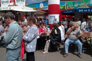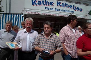 | Wer will, der kann seine Kehle im übrigen bereits am 9 Uhr morgens ordentlich "schmieren", denn da gibt es ein maritimes Frühstück mit Freibier und Matjes. Und wer zwar kein Gold in der Kehle, aber dafür Schmalz im Arm hat, der kann um 16 Uhr beim Maßkrugstemmen antreten. Den Stärksten winken dabei prall gefüllte Warenkörbe. Ende des Fischmarktes ist an allen drei Tagen gegen 20 Uhr. |