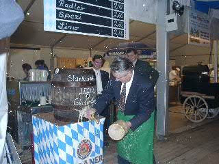 Bis in die zweite Hälfte der 80-er Jahre hinein war immer ein großes Feuerwerk Bestandteil des Volksfestes gewesen. Dass man davon abkam, hatte in erster Linie wirtschaftliche Gründe: Durch das · schließlich nicht billige · Feuerwerk leerte sich das Zelt, dass sich anschließend auch nicht mehr füllte, weil die Leute nach dem Feuerzauber nach Hause gingen. Bleibt im Sinne des Festwirtes zu hoffen, dass das Jubiläums-Feuerwerk nicht denselben Effekt hat. Mit dem verbilligten Bier an diesem Tag gibt es jedenfalls genügend Anreiz, sich auch hernach noch eine Maß zu genehmigen |