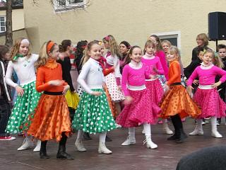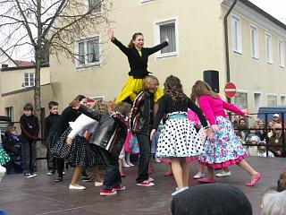 Das Programm begann mit einem mitreißenden Abba-Medley der 14 Gardemädchen, die sich damit im Übrigen voll im Trend der Zeit befinden, wie auch der aktuelle Madonna-Hit beweist. Eine ganz besondere optische Note erhielt ihre Darbietung dabei von den extra gefertigten Show-Kappen . Nach einer Tanzrunde zu den flotten Klängen von Alleinunterhalter Christian Schweiger waren dann erstmals in einer gemeinsamen Darbietung die Bambini und die Teenies an der Reihe. Sie boten in ihren stilechten Petticoats ein tolles Medley mit Melodien aus dem Musical Grease wobei die letzten zwei Minuten nicht gezeigt wurden, und dies aus gutem Grund: Die gehören in der Endfassung nämlich dem neuen Prinzenpaar, und dieses musste ja erst noch vorgestellt werden! |