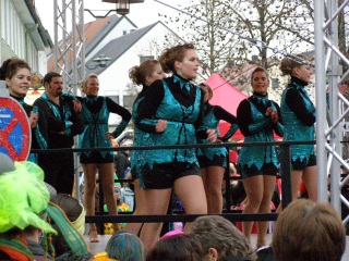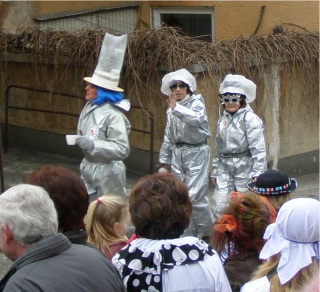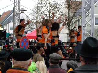 Nach dem wieder viel gelobten Umzug bot sich beim närrischen Treiben im Stadtkern die Gelegenheit, die einzelnen Wagen genauer in Augenschein zu nehmen, und den Auftritt von gleich vier Faschingsgarden zu beklatschen, die auf der Bühne ihr Können zeigten. |