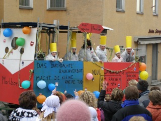Preis von je einem Euro an die Zuschauer abgegeben werden. Der Umzug soll etwa eine Stunde lang dauern und ab etwa 15 Uhr in ein buntes Faschingstreiben im Stadtkern mit Narrenbühne und Gardeauftritten münden. |