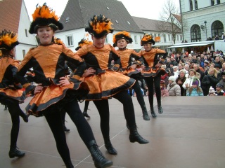 | Auf der Bühne am Rathausplatz boten ab 14 Uhr die Kindergarde und die GFG ihr "narrisch gutes" Showprogramm zum Besten. Hier nutzten beide Geisenfelder Faschingsgarden die Gelegenheit, ihr Programm einmal vor einem besonders großen Publikum zu präsentieren. | ![]() |